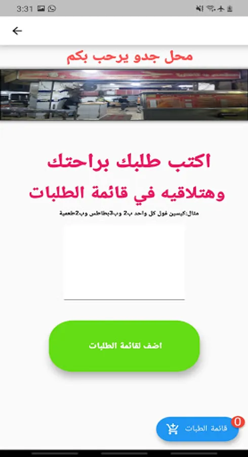 توصيل اي طلبات لسكان مدينة قباء من اي محل داخل مدينة قباء ويمكن توصيل من اكثر من محل في نفس الاوردر ايا كان نوع المحل يوجد لدينا توصيل الفطار وتوصيل من محلات العطارين وتوصيل من الصيدليات وتوصيل من السوبر ماركت وافران المخبوزات