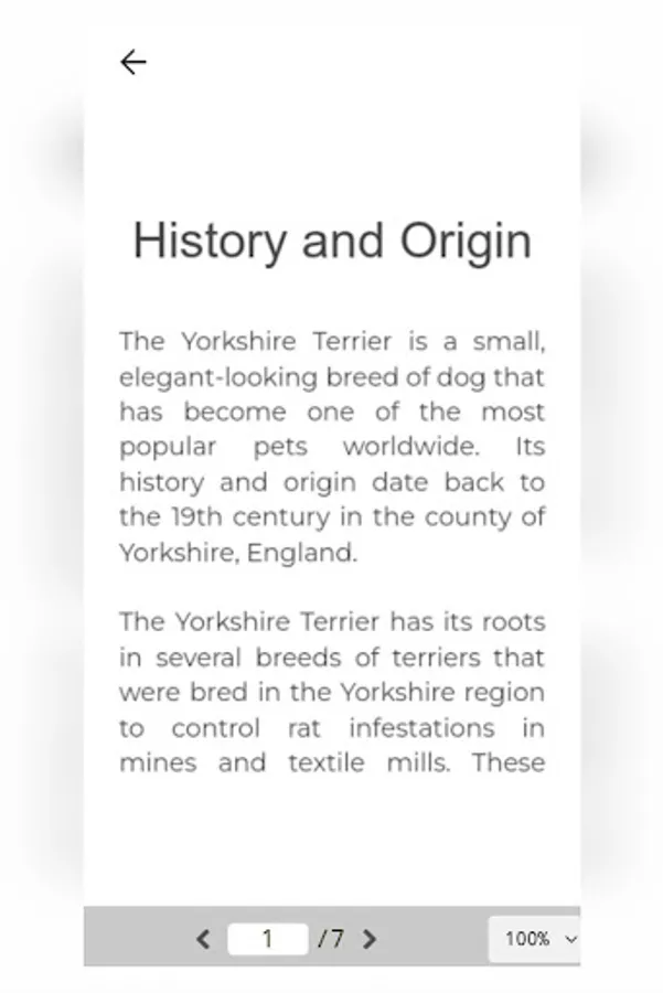 This app is a tool for lovers of this dog breed. It provides detailed information about the specific characteristics, care and training of the Yorkshire Terrier. With this app, users can learn about the history and origin of the breed, their characteristics and temperament, possible health problems affecting them and much more.