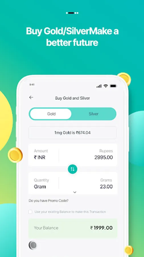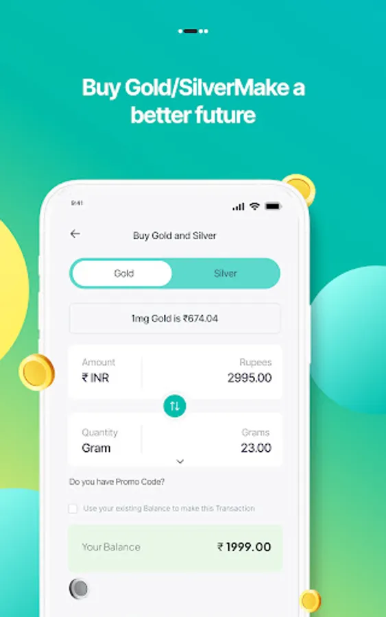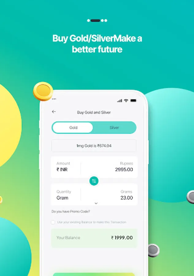 Buy digital gold and silver for as little as Rs.1/-. There is no minimum purchasing price.