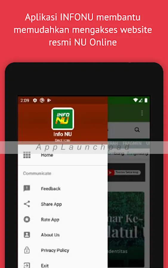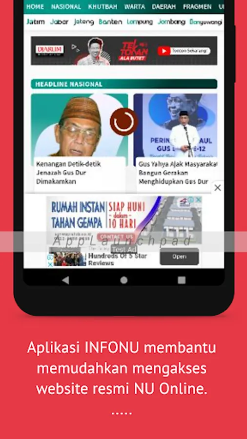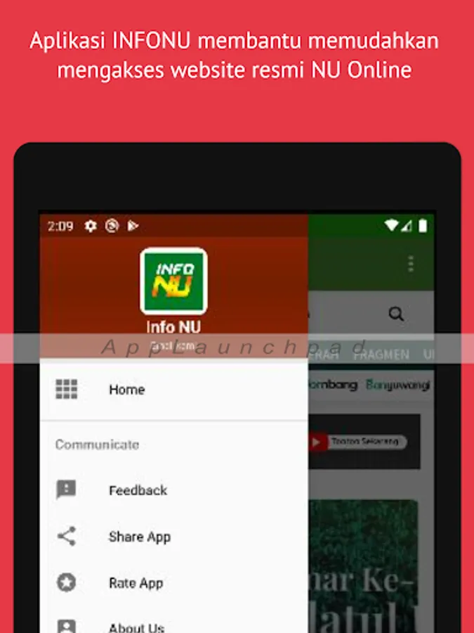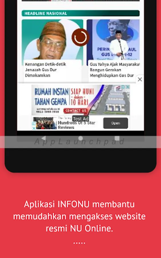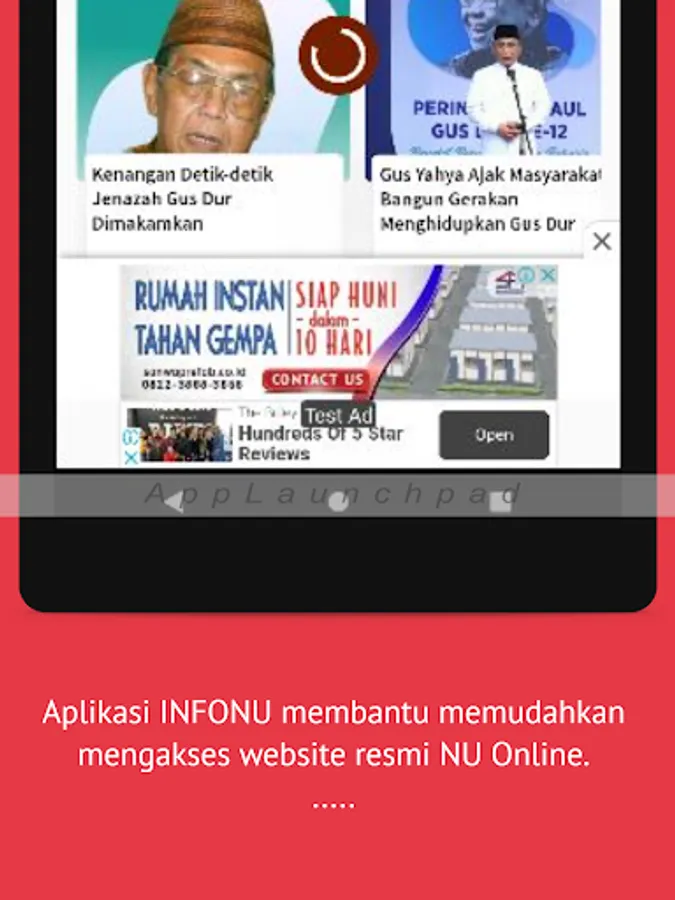 Infonu application is an android webview application that displays links from the nu.or.id website.
