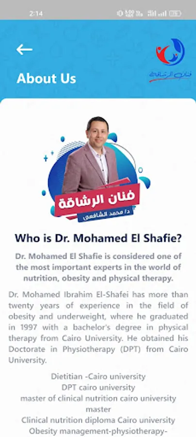 Fanan Elrashaka is an app for booking the clinics of Fanan Elrashaka Dr. Muhammad El-Shafie