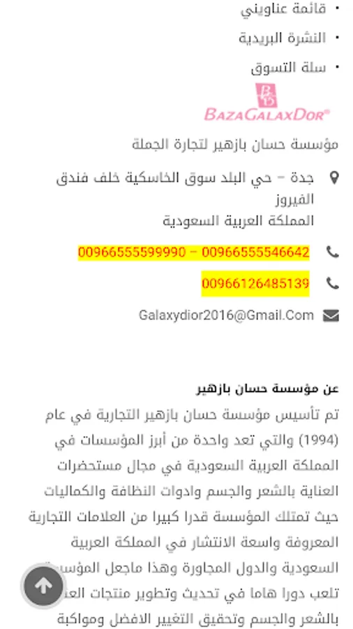 Was established Hassan Bazuhair Trading Est in (1994), which is one of the leading institutions in the Kingdom of Saudi Arabia in the field of cosmetics, hair, body, and cleaning tools and accessories care where the institution has a great deal of well-known brands and widespread in Saudi Arabia and neighboring countries. This is what made the institution play an important role in the modernization and development of hair and body and achieve better change and keep pace with the international market as well as social development and economic development, care products