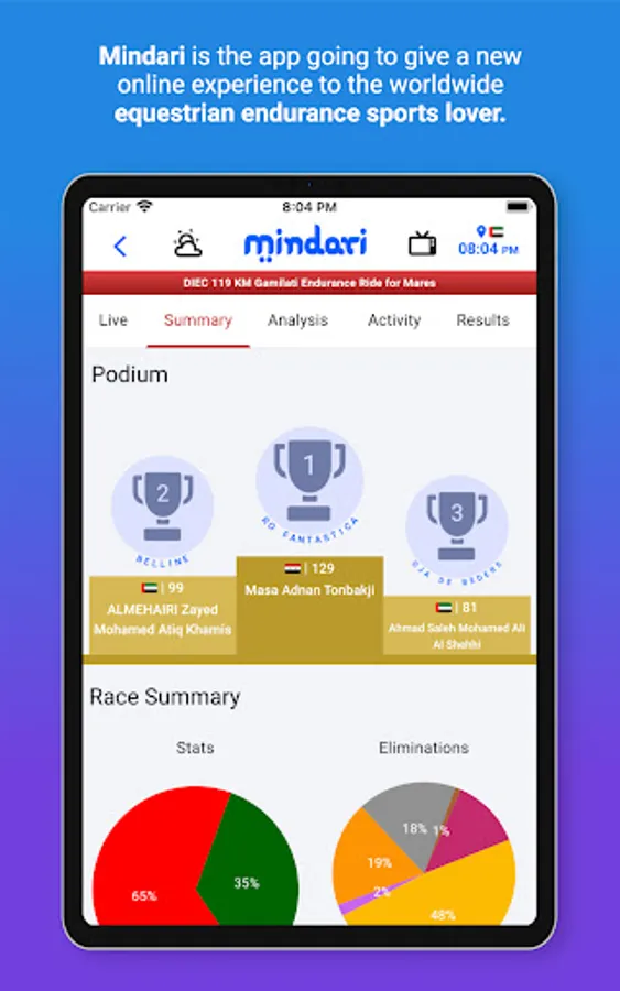 Equestrian sports are sports that use horses as a main part of the sport. Mindari is the app going to give a new online experience to the worldwide equestrian endurance sports lover.