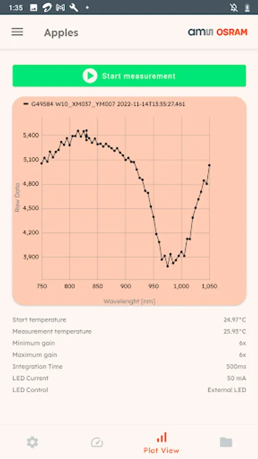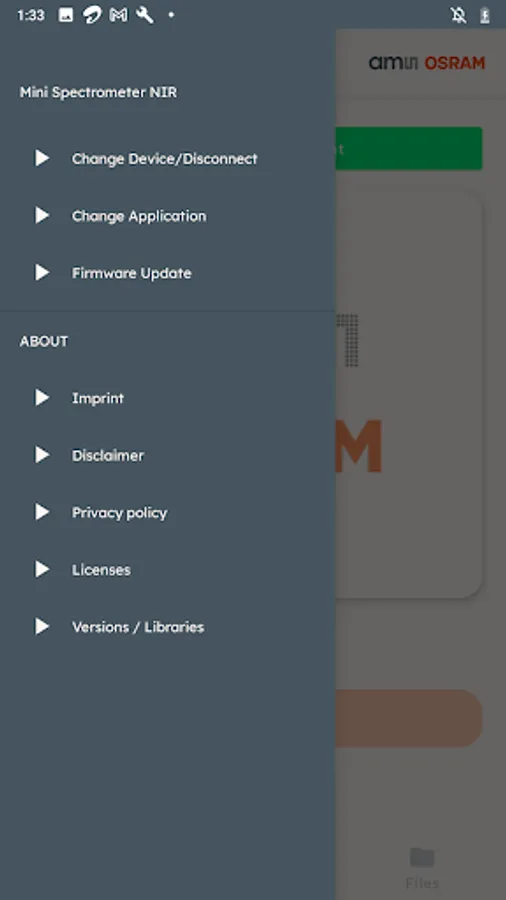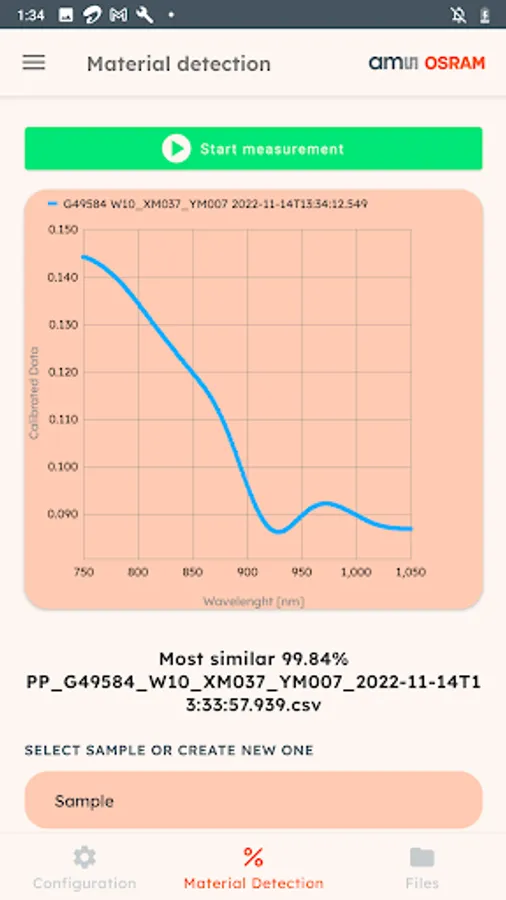 General purpose spectral NIR sensor for measurement wavelength range from 750 nm to 1050nm (AS7421 64-channel NIR spectrometer-on-chip and 6 number of SFH 4737 broadband NIR LEDs) with Bluetooth enabled and battery powered design.