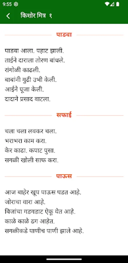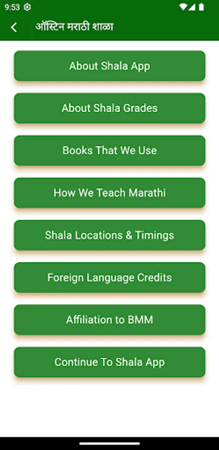 Austin Marathi Shala' curriculum has 9 grade levels to learn Marathi. This 'Austin Marathi Shala' application will help parents/teachers pace their teaching based upon student's leaning capability. Each grade will follow respective Syllabus and teachers will be expected to cover this syllabus in a time span of 12 weeks/semester pattern. The application has revision material along with sample reading material & oral / written exam papers for each grade, to promote familiarity with exam pattern and overall structure of the curriculum.