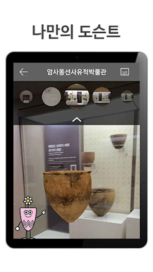 - You can look around the Amsa-dong Prehistoric Museum through VR video tours, see pottery in the Amsa Museum in detail through high-resolution images, and view the artifacts at home with AR.