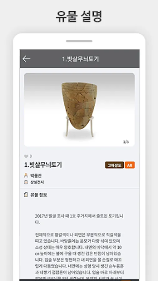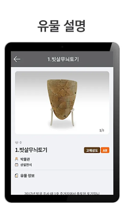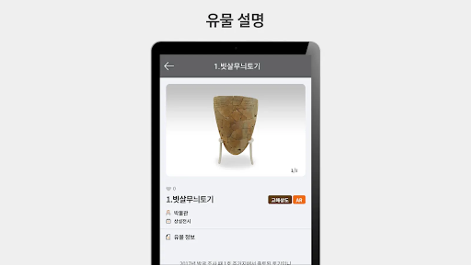 - You can get detailed information through the artifact description, and you can enjoy the 3D scanned artifact more realistically with AR content.