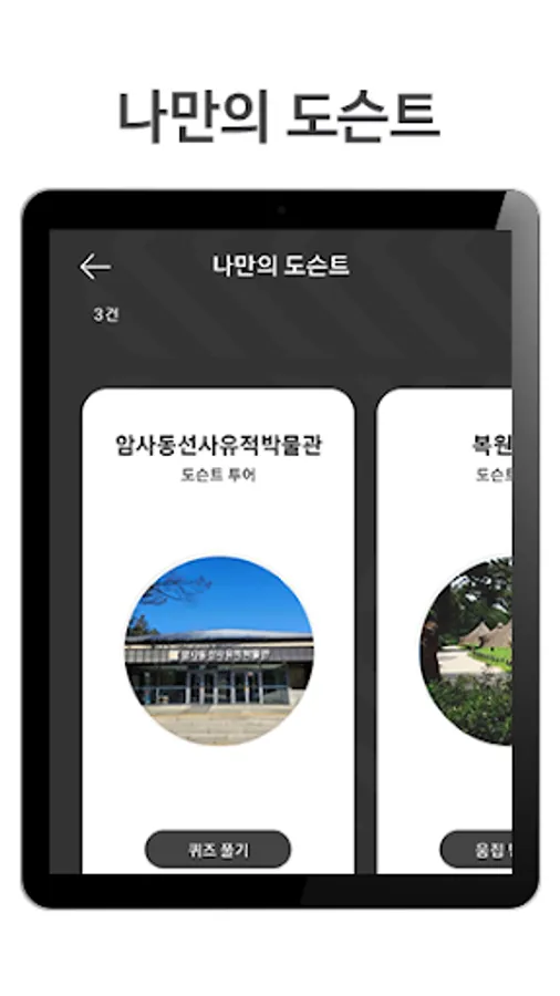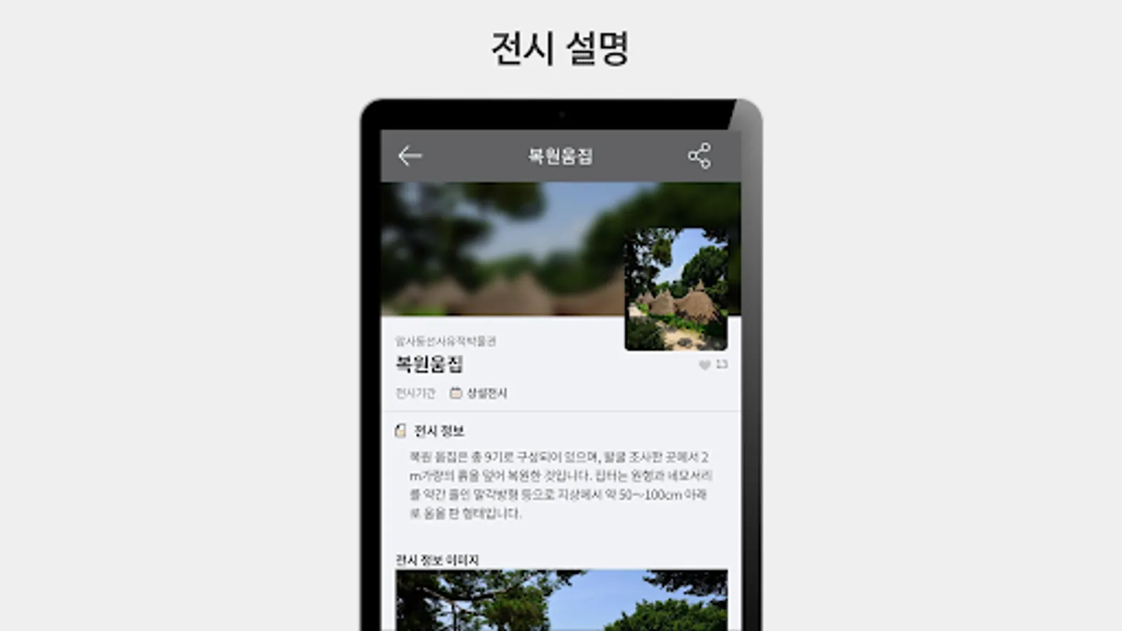 The Amsa-dong Prehistoric Relics Museum app allows you to easily and enjoy the Amsa-dong prehistoric relics through your own docent. In addition, you can use the exhibition voice guidance service, and you can easily search for artifacts by shooting with your smartphone. In addition, new exhibition contents using augmented reality (AR) and virtual reality (VR) are prepared.