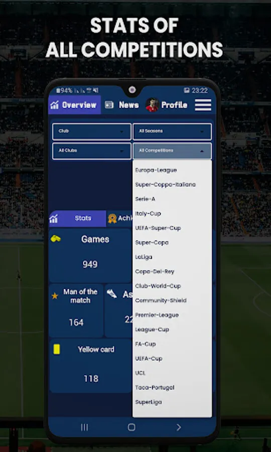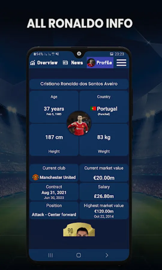 Ronaldo stats is an application that contains stats and news of Cristiano Ronaldo .