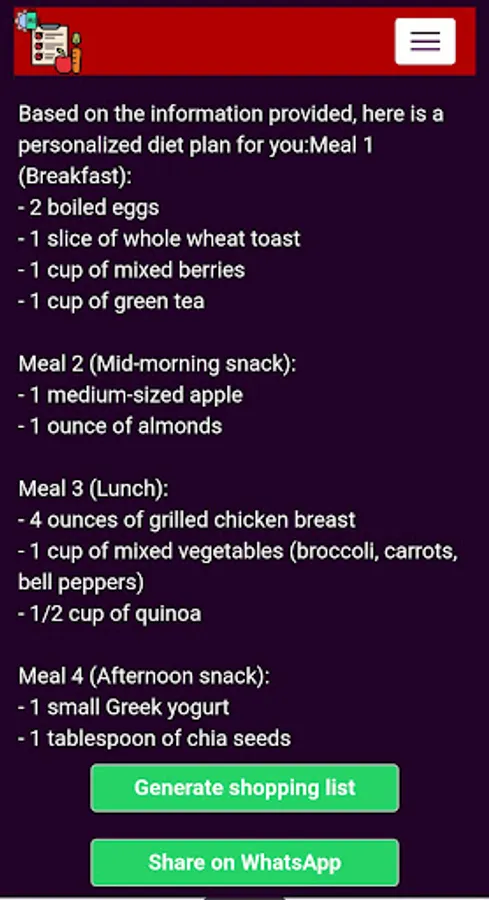 ✅ 🏆: Quickly generate the necessary shopping list for the diet created with Artificial Intelligence🥦🥩