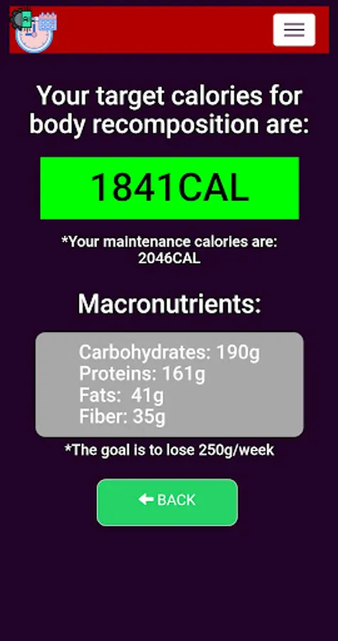 ✅ Caloric Requirements Calculator 🍽️: Learn how many calories you need to consume daily to optimize your body recomposition 📊.