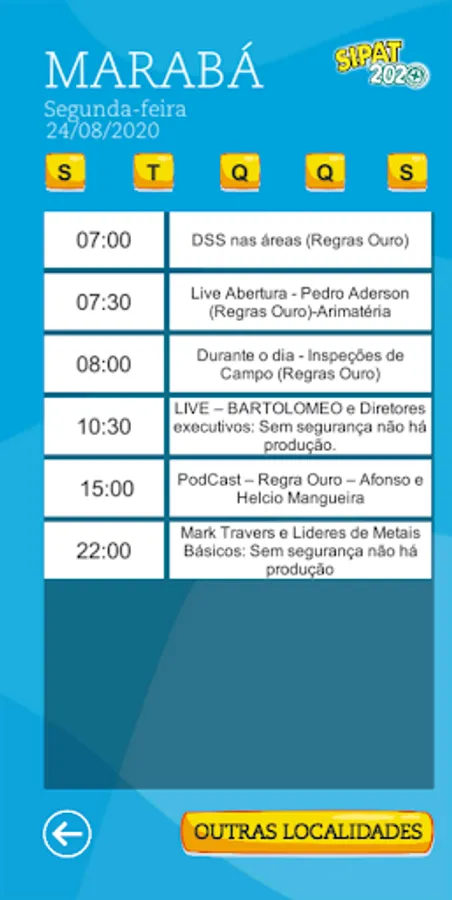 The APP has Programming of several locations, and an interactive QUIZ where each theme will be released according to the day of the event, with explanatory video on each Theme and Ranking by location.