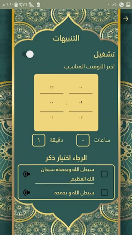 - خاصية " ذكرني " بالتوقيت الذي تريده والذكر الذي تريده والصوت الذي تختاره