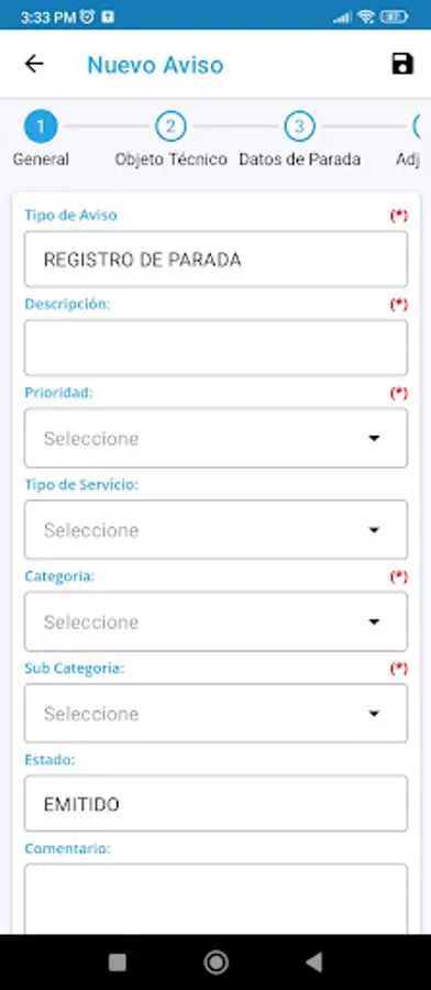 AMSYS version for Android devices that allows any user, with sufficient permissions, to create notices and notify inspections with the possibility of attaching files of different types (jpg.pdf., etc.)
