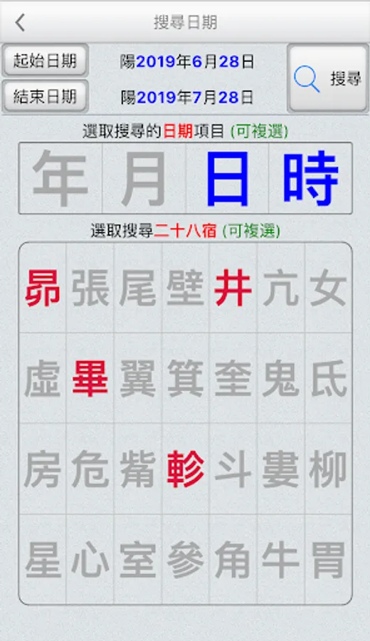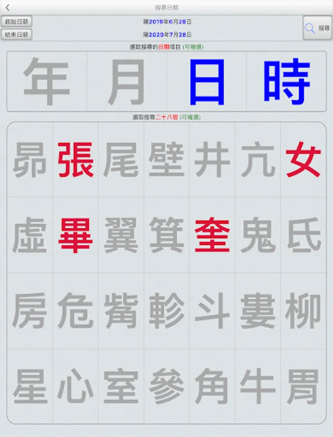 The Twenty-eight Perpetual Calendar is an auxiliary tool for the "Twenty-eight Accommodations Day" and provides flexible conditional search. More functions are as follows: