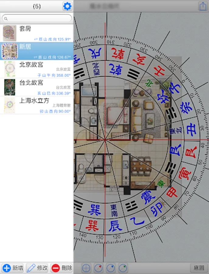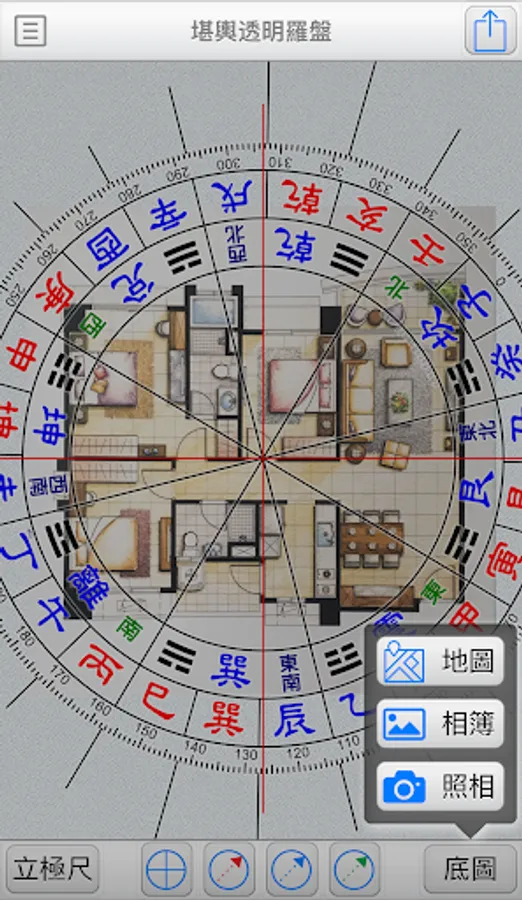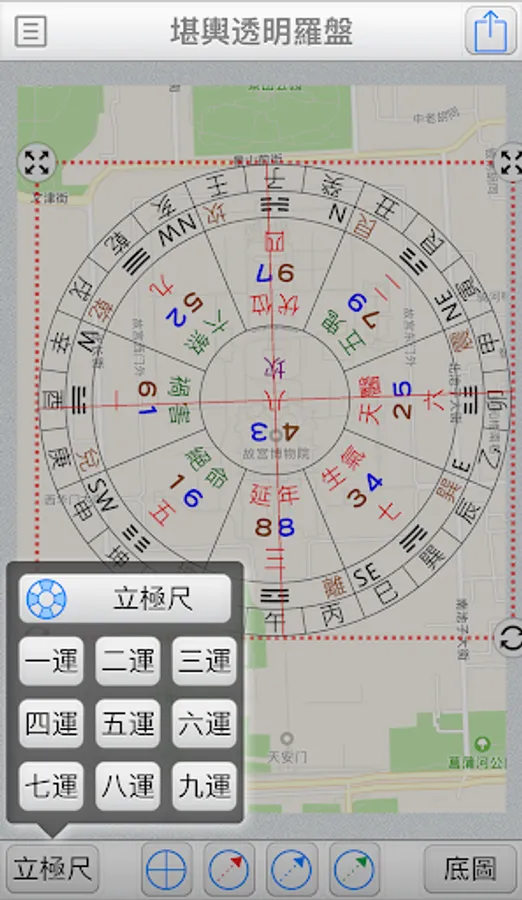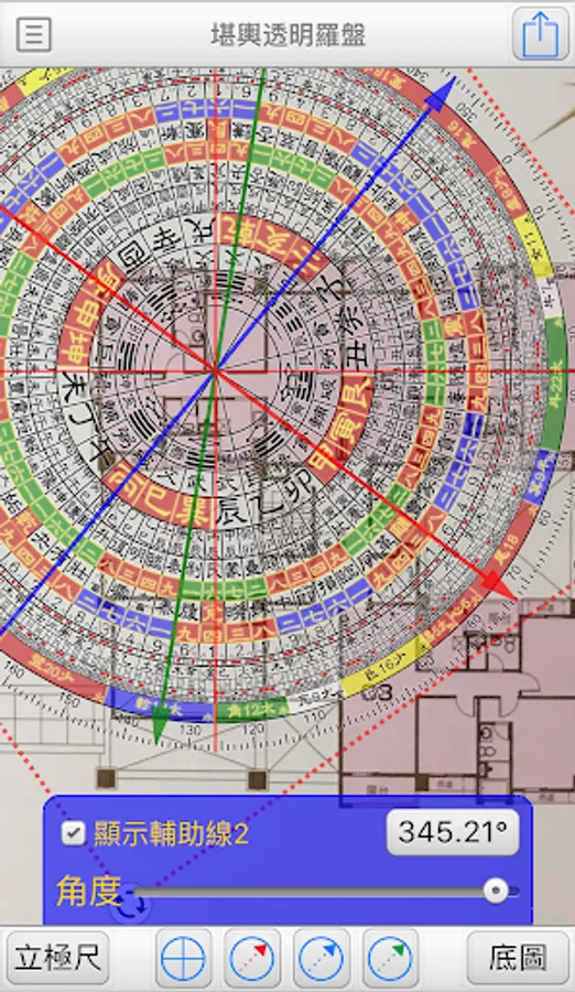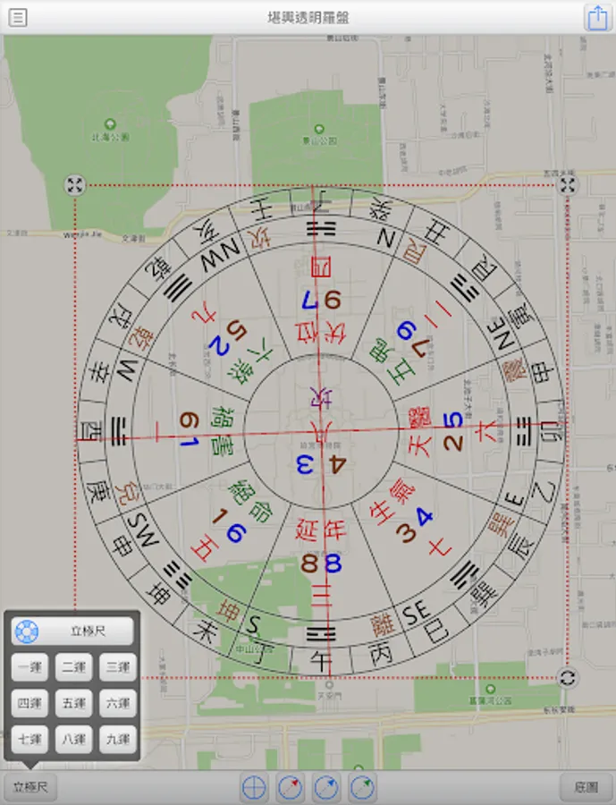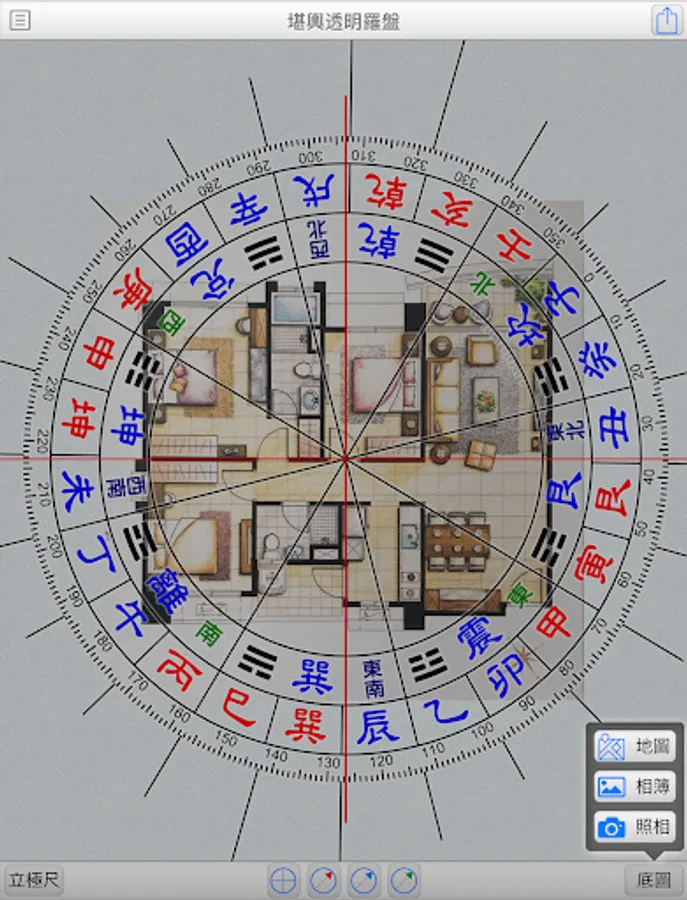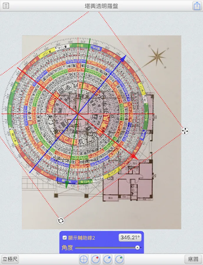 "Kanyu Transparent Compass" is a tool for measuring orientation on "maps" and "building floor plans". It provides a variety of vertical ruler disk surfaces, just like a transparent compass, which can be set on one drawing surface to facilitate orientation measurement and Fengshui identification.