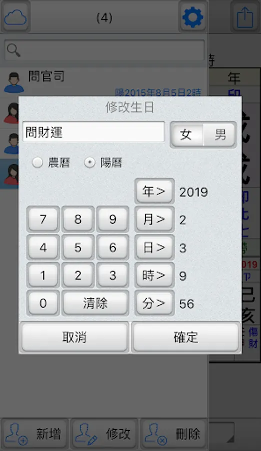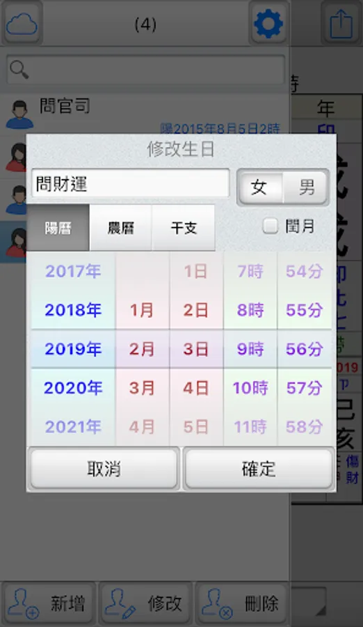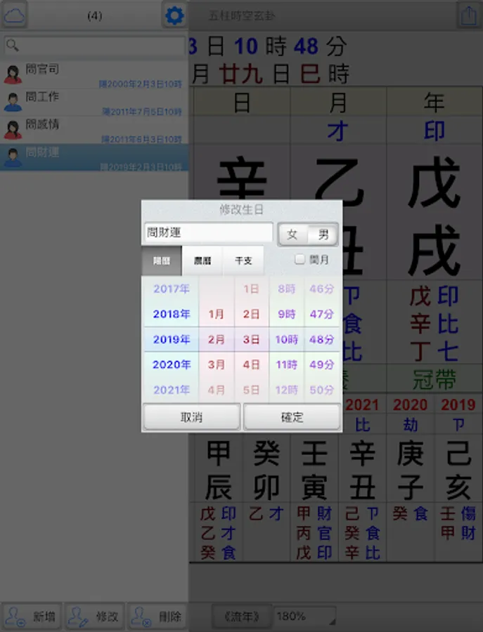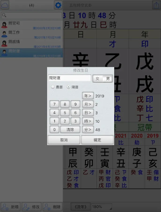 ●Provide "Gregorian Calendar, Lunar Calendar, Ganzhi" to input the date of birth, and you can input it in any way.