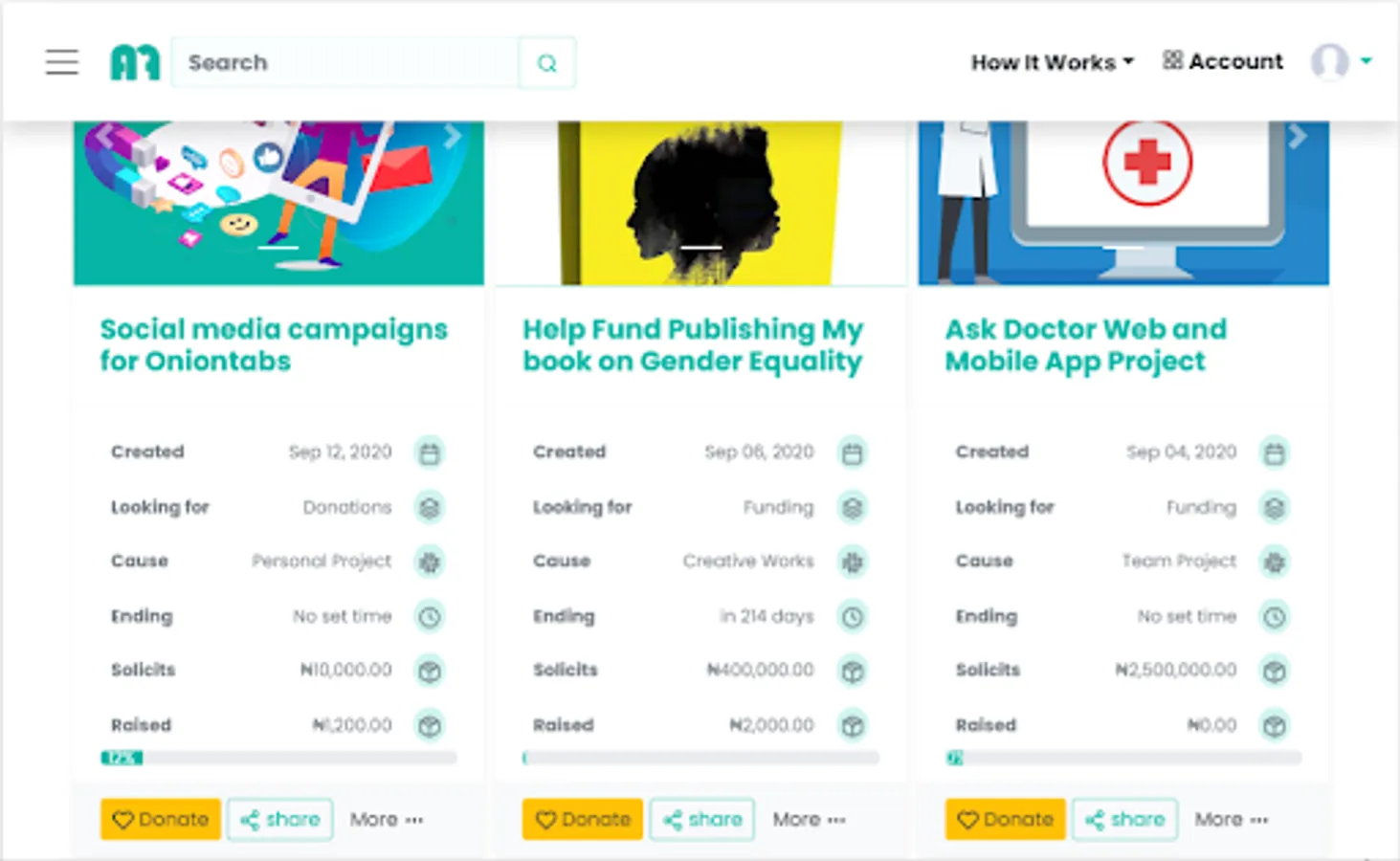 Then you fund an existing project in the process, that is; you look for an ongoing fundraising campaign on the platform and donate to it with any amount. See why this is important here
