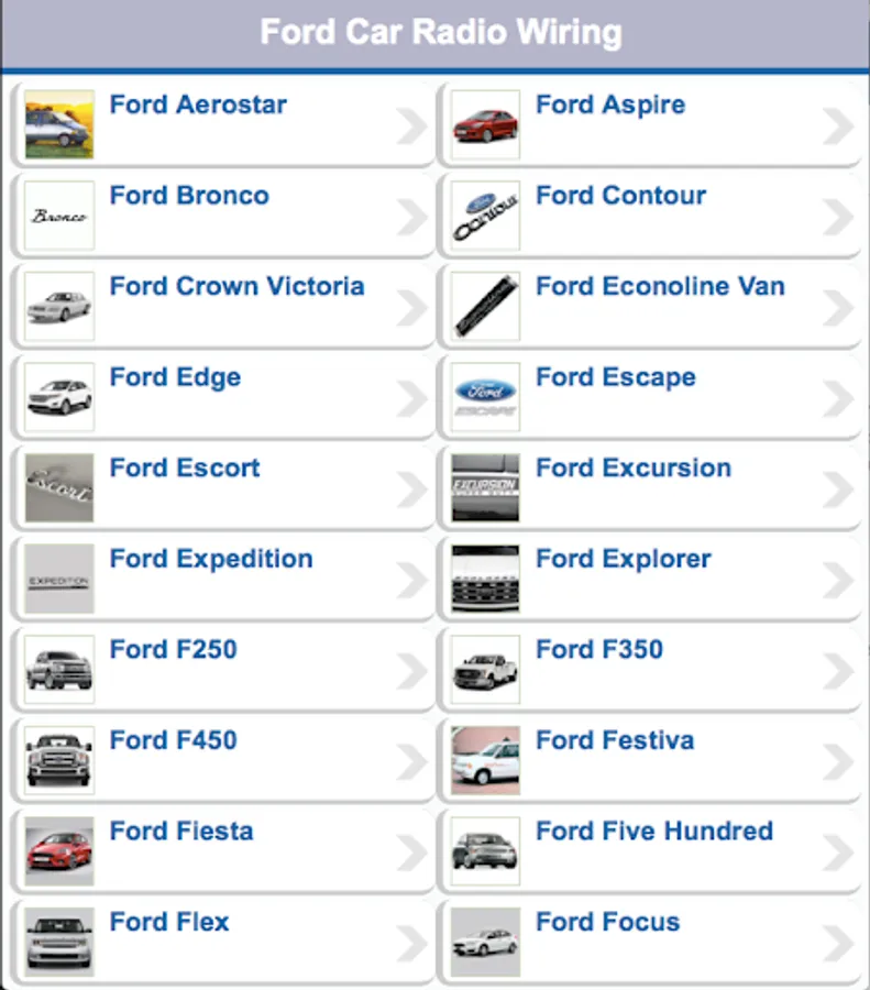 An easy way to identifying the correct color audio wires and the automobile specification details for Such As Ford Automobile and more. The list inside this apps contains All Ford Automobile Radio Wiring :