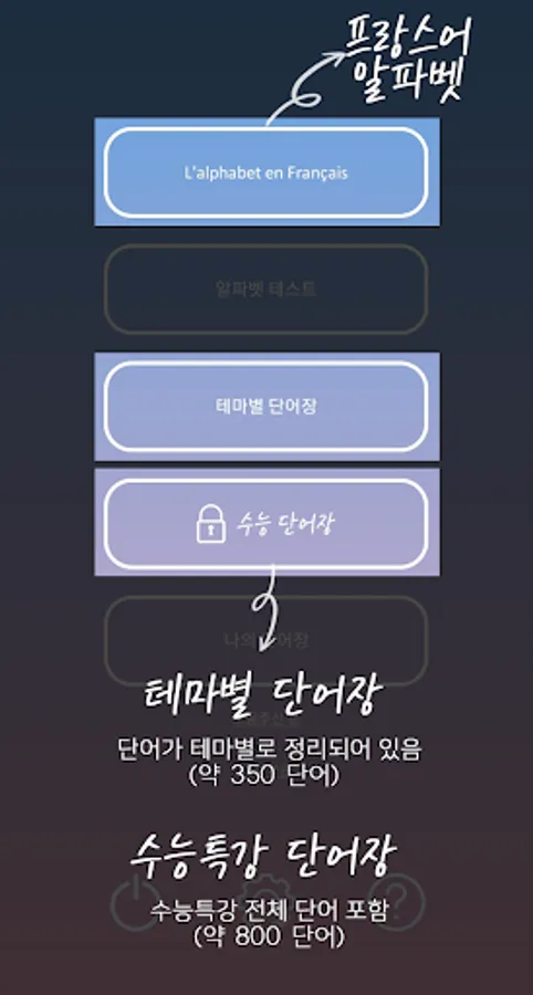 ▶ French Vocabulary Vocabulary for each theme (approximately 350 words)