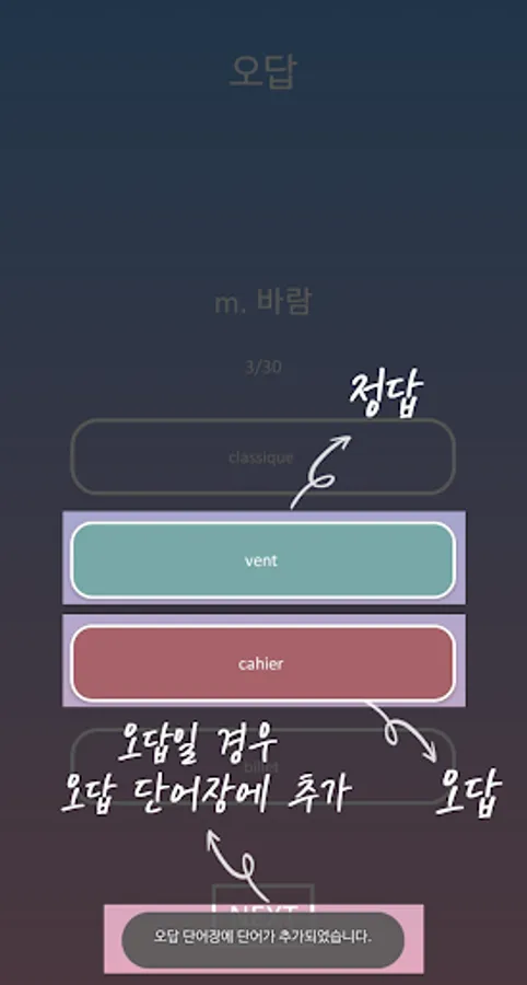 ▶ Save and manage incorrect vocabulary