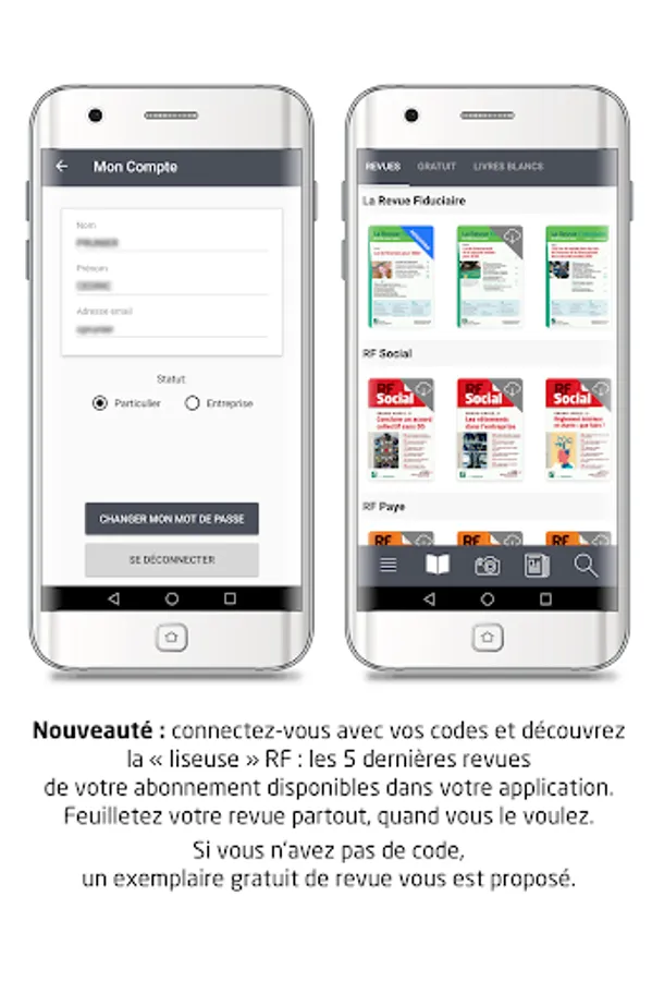 - Consult the journals of your subscription in the library: the last 5 reviews your subscriptions (Handout Hebdo, RF Social RF Paye, RF Accountant, RF Council Interests Private), free books (for non-subscribers), books white, ...