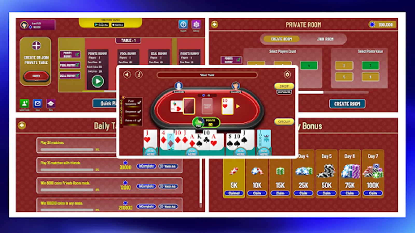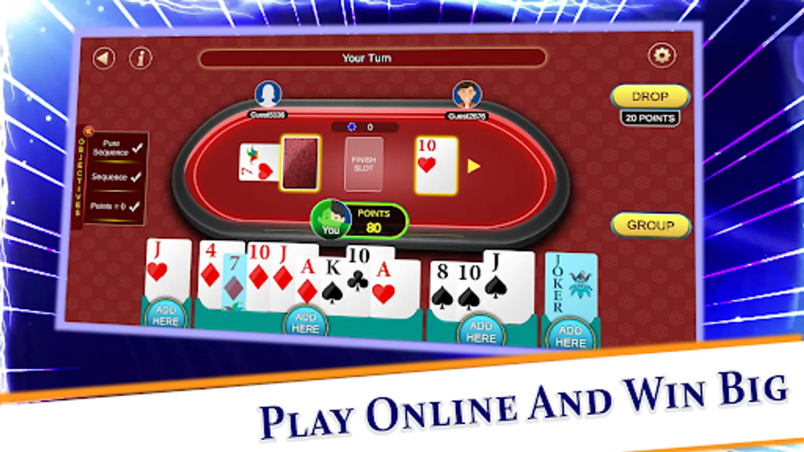This game includes various variations like Points Rummy, Pool Rummy and Deal Rummy.
