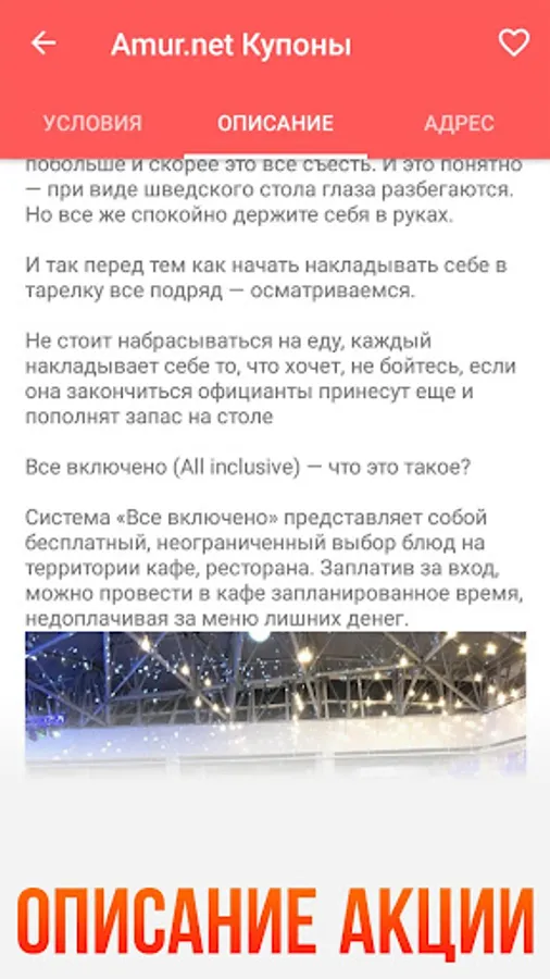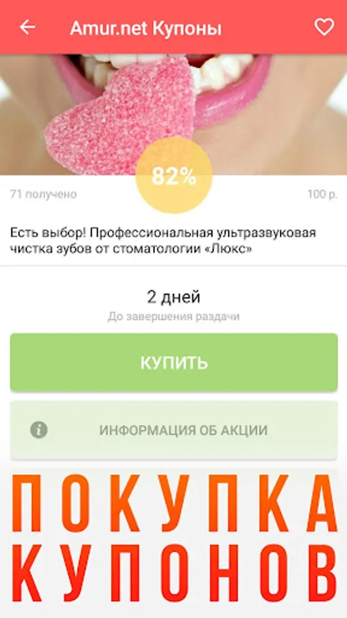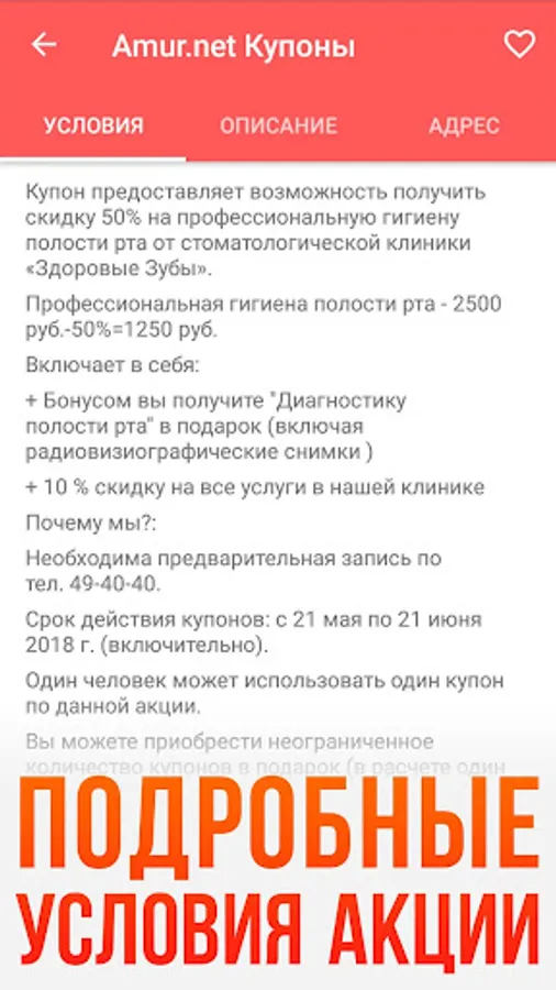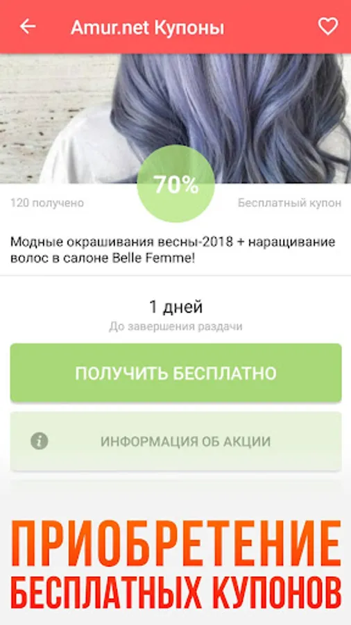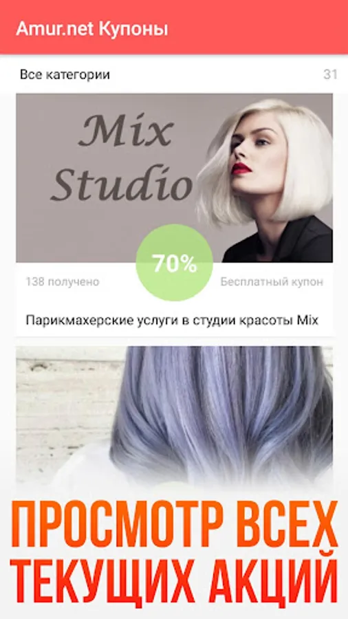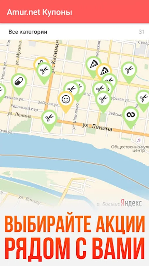 Amur.net Discounts - a service that allows you to use the great offers at a discount of up to 100% in the city of Blagoveshchensk. Here you will find discounts at cafes, restaurants, leisure center facilities, discounts on services of beauty salons, medical and dental clinics, as well as for goods and much more. The new shares are released daily.