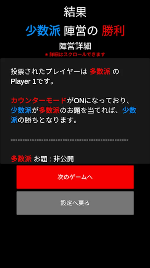 When the counter mode is ON, even if you hit the wolf by "voting", if you win the theme of the majority, the wolf will win.