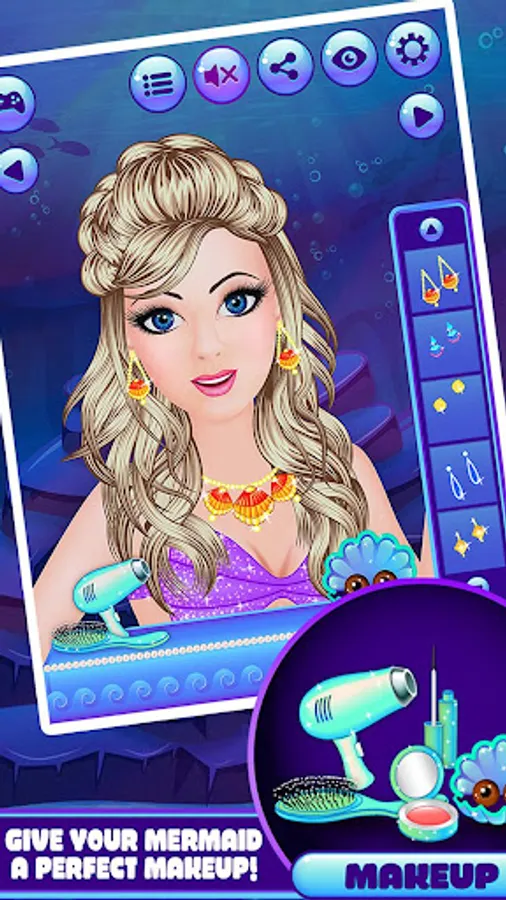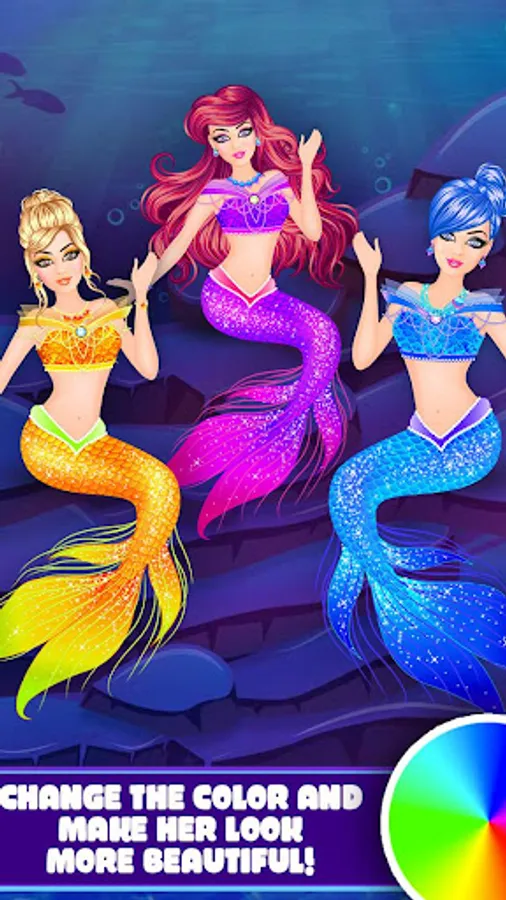 - Give Mermaid delightful look with beautiful hairstyle; you can change the hair color by sliding the color option
