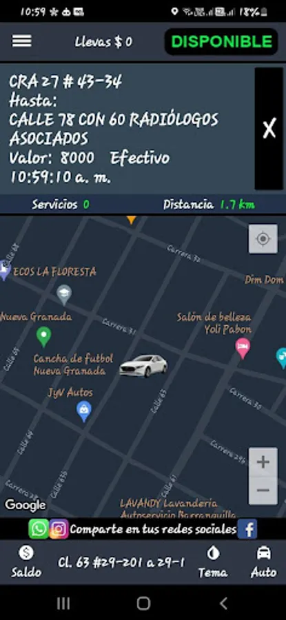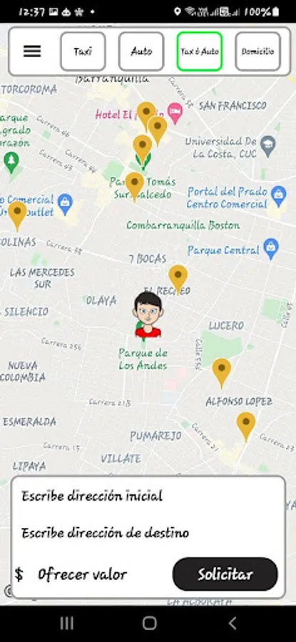 Your address is taken by the GPS of the application or you can write or correct the address in case the direction taken by the GPS is wrong and in case of any warning or reference point, you can write to the driver through a personalized chat .