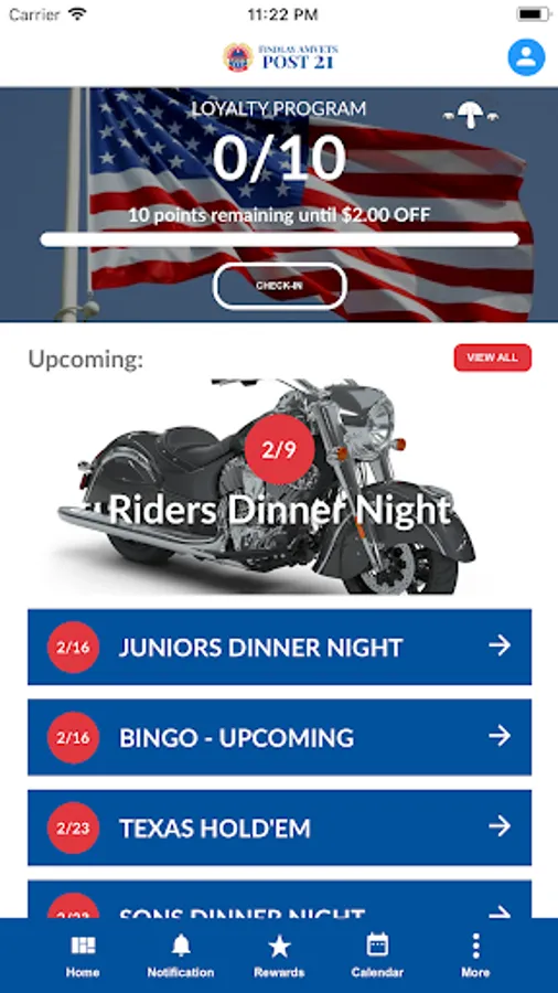 Remember to check in every time you visit to receive points towards awards & discounts.