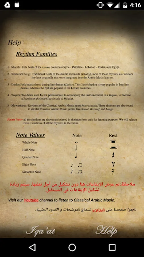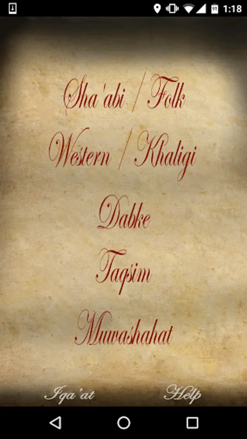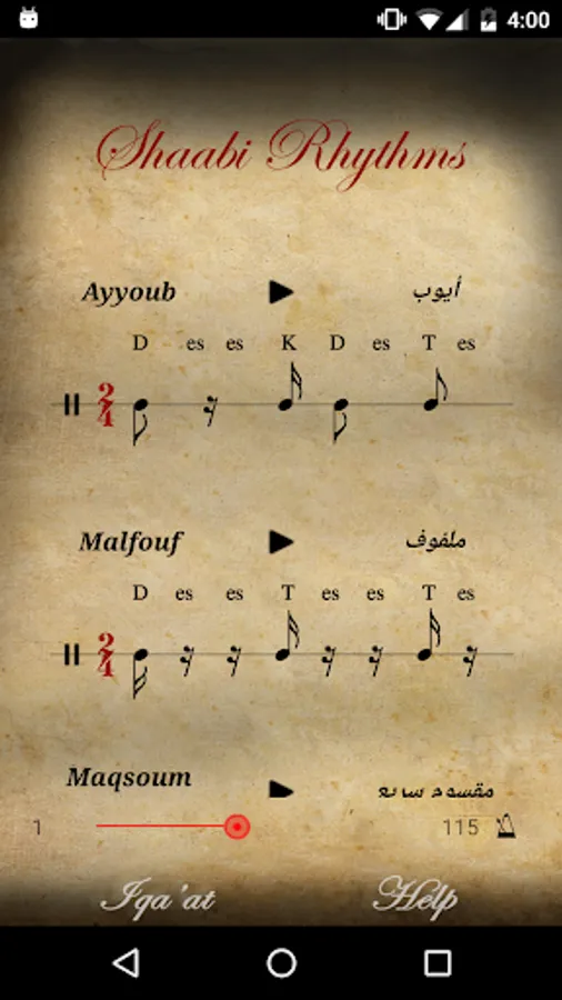 - Contains 5 Rhythms Categories including Sha'abi (Folk), Khaligi, Dabke, Taqsim and Muwashahat.
