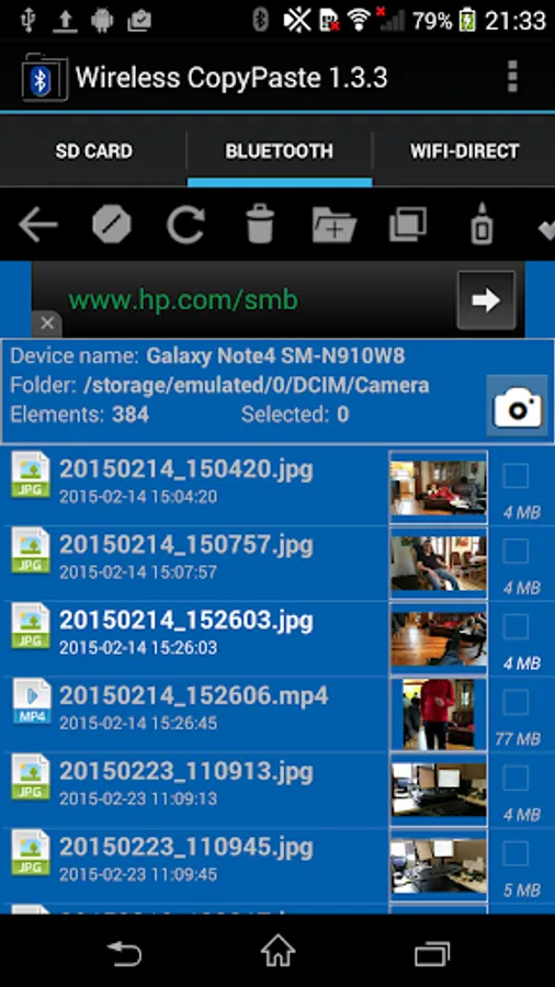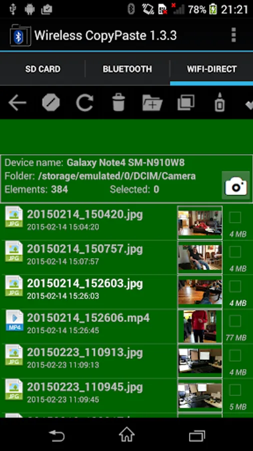 This application allows you to manage and share files between android devices through Bluetooth and Wi-Fi Direct protocols.