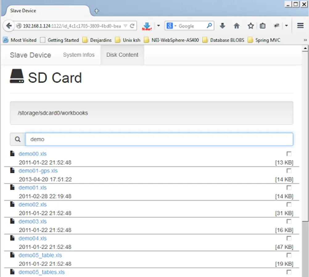 That's it! The second device can see the "Slave Device" informations and can browse it's SD card live!