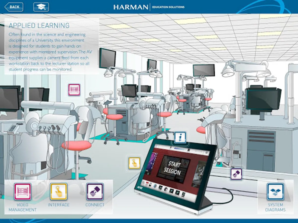This innovative and interactive application invites you to explore a virtual education facility, filled with the very latest in Harman technology.