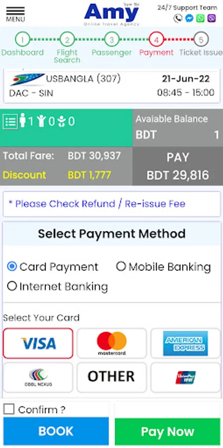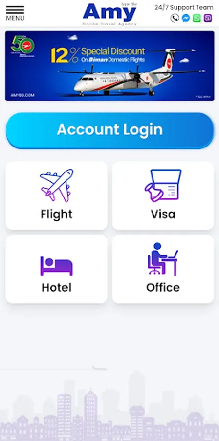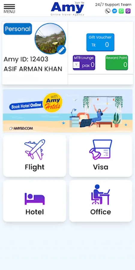 By using the "Amy" Web Platform and Mobile App, anyone can easily book any Domestic/International air ticket, hotel, umrah package, ready coworking office space, or can apply for a quick visa process using a Debit/Credit Card, bKash, Nagad, Rocket or any other mobile banking platforms.