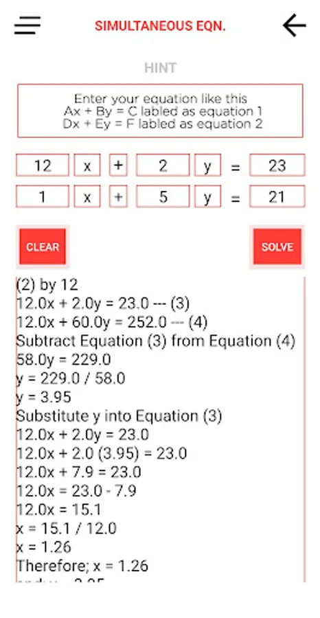 Users can use Simultaneous Equation Solver to easily calculator simultaneous equation