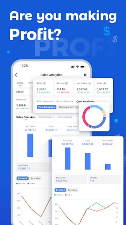With an overview of data on your Amazon sales and profit and you can drill down into specific ASINs as well to review its sales trend to help you forecast your sales, focus on the most profitable products and assist with your inventory management decisions.