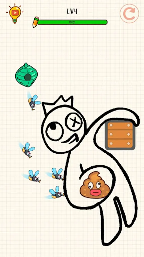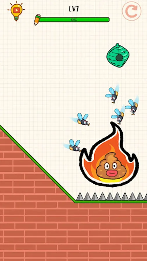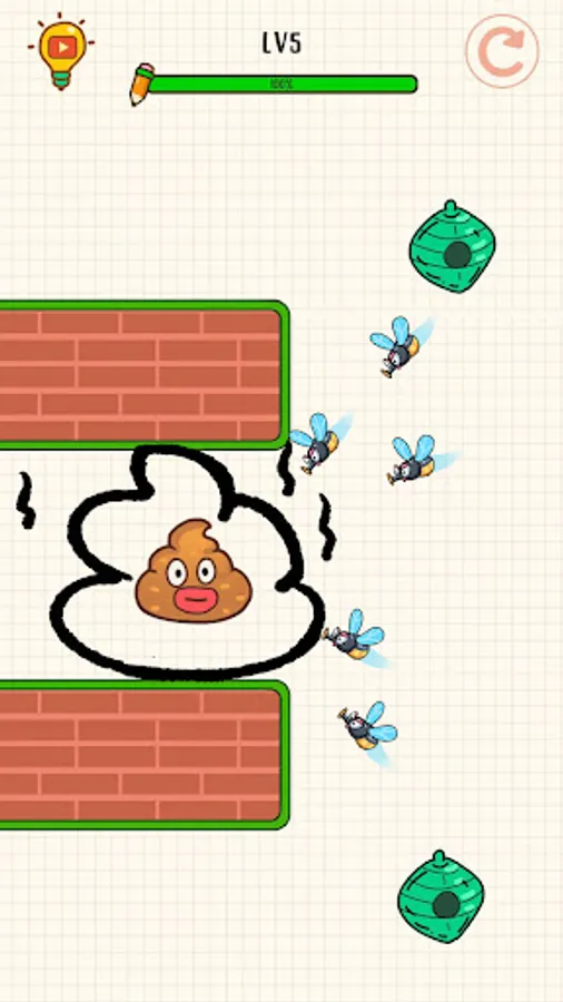 Oops! Poopy is being attacked by a sizable swarm of flies. You have to save it by drawing a line of any shape. Don't let the flies get too close or let Poopy fall down the water, or touch the spikes.