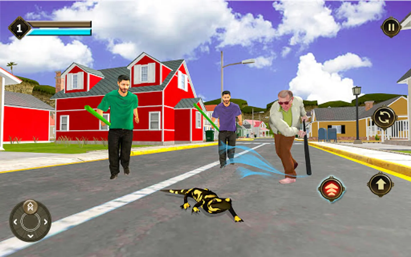 In this game Chameleon Mutant Komodo - Reptile Lizard Games small lizard is passing through an experiment that affects the lizard behavior. Now the small lizard is not a simple reptile it is like a mutant lizard. Now the size of the lizard is increase which makes it Komodo dragon type. This beast now attacks different people and different wild life animals. In this monster simulator reptiles game you have controls to switch between small and large lizards. Some levels have restrictions to play with a small or large chameleon iguana. Lizard's game character is like an iguana. So you have to survive in the wildlife of lizard games.