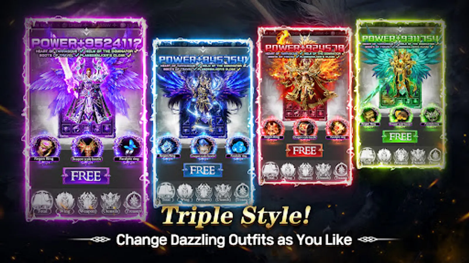-Exquisite outfits of different styles, cool mounts, cute pets, gorgeous wings, and powerful weapons, all the things you could ever get are here! Match your unique look and show your style! For example:Blades of Chaos, Evil Suits, Immortal Demon Suits, Gundam-like Suits.