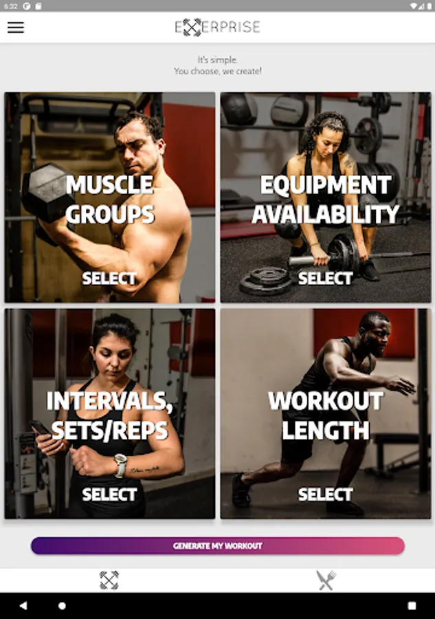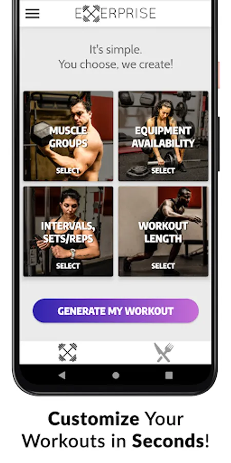 EXERPRISE is the World’s first randomized workout and meal plan generator that uses advanced filtering technology to give you the best workout and meal plan possible within seconds completely customized for you to reach your goals & fit your lifestyle!