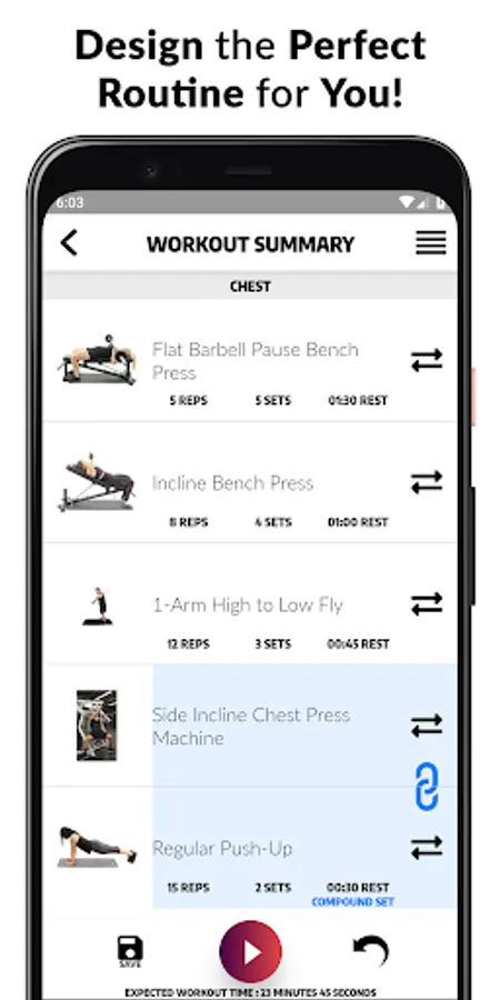 -Within seconds, you will get a full optimal workout randomly generated for you based off your customized settings!