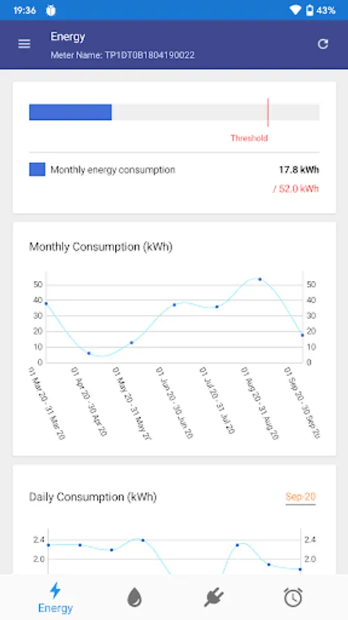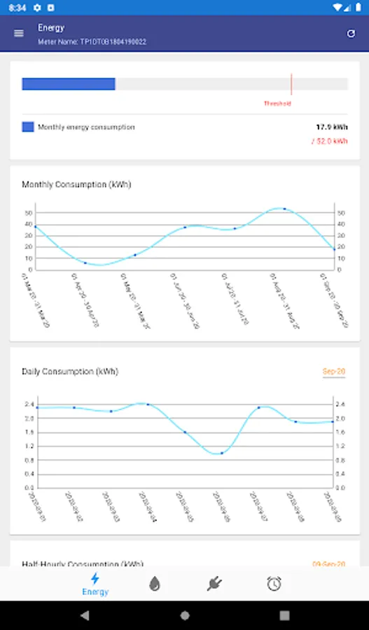 You can also view your daily and monthly energy and water consumption, and set a threshold to manage your consumption for the month.