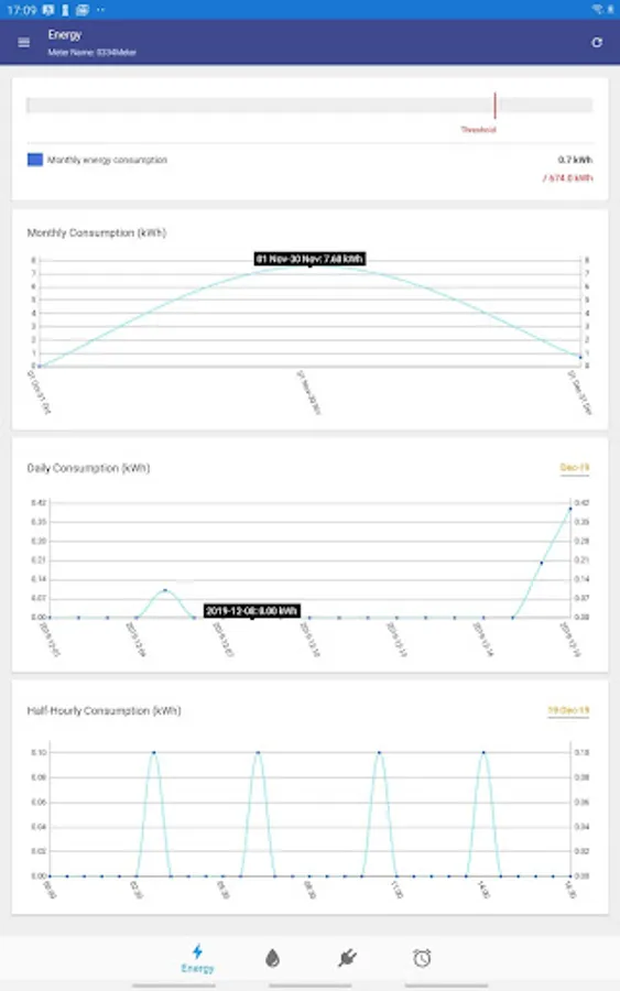 You can also view your daily and monthly energy and water consumption, and set a threshold to manage your consumption for the month.