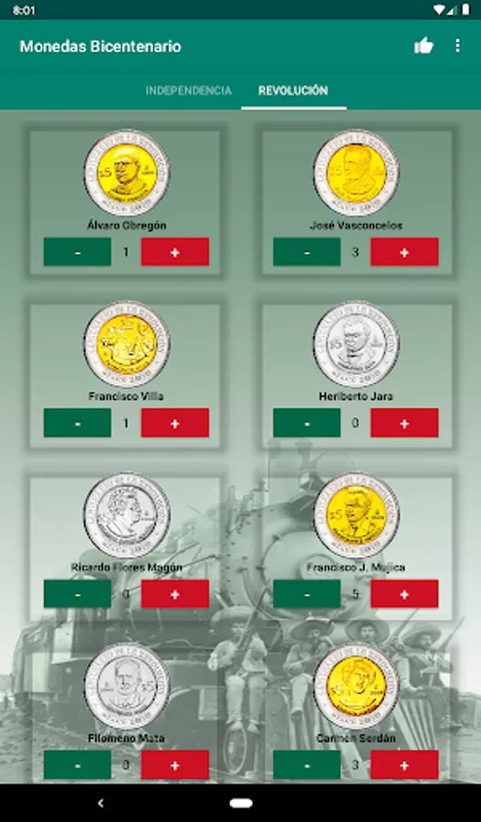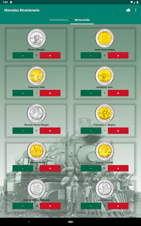 With Monedero Bicentenario you can take control of your collections. In addition, you can consult the biography of historical figures and launch virtual "flies" with your collected coins.