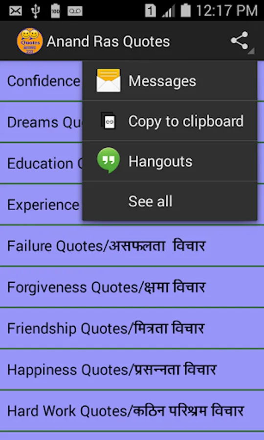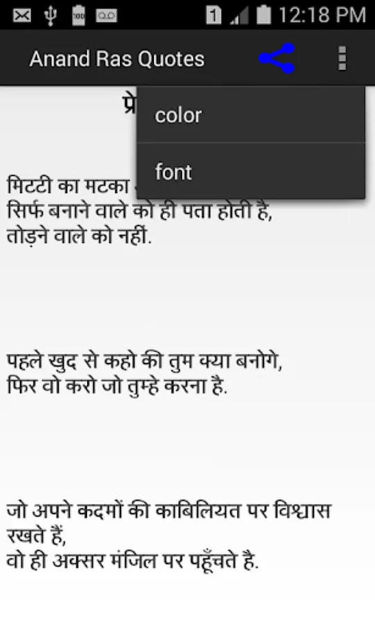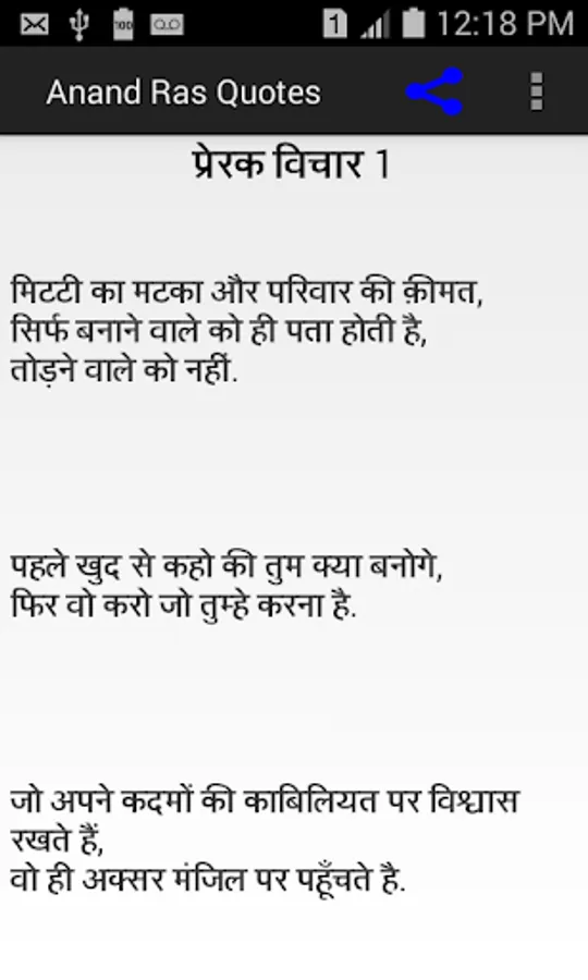 इस ऐप में हिंदी भाषा में "विचार" का विशाल और नवीनतम संग्रह है। Quote जो आपको प्रेरणादायक देता है
