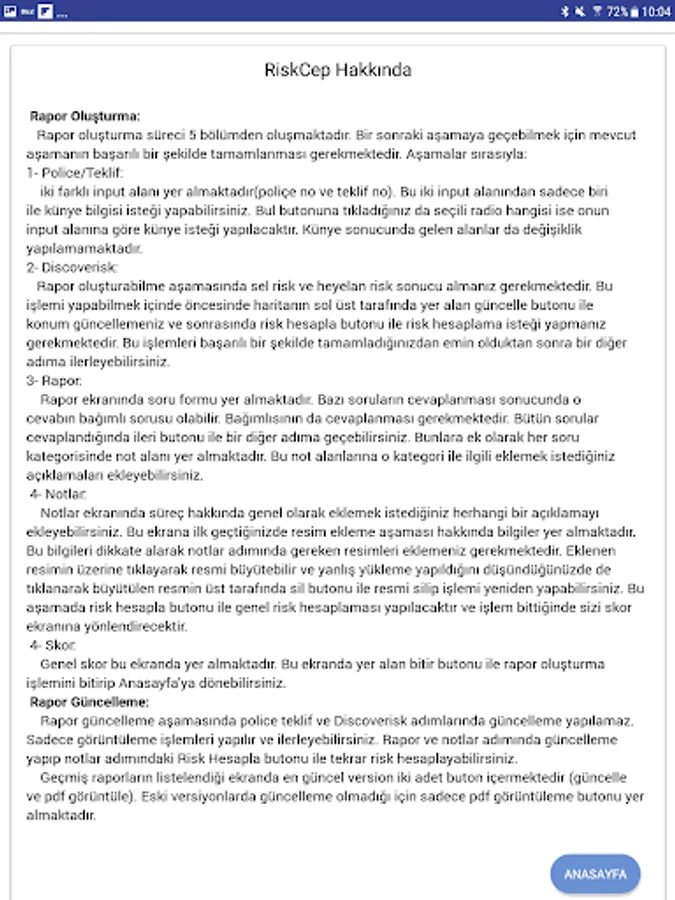 Reporting practices for grading the risks of fire, flood-flood and landslide risks of small enterprises within the scope of fire insurances.