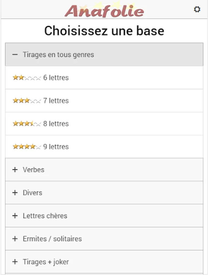 Select a base words (6,7,8 prints letters, 7 + 1, anagrams, wildcards, JKQWXYZ but also verbs, etc ... invariable